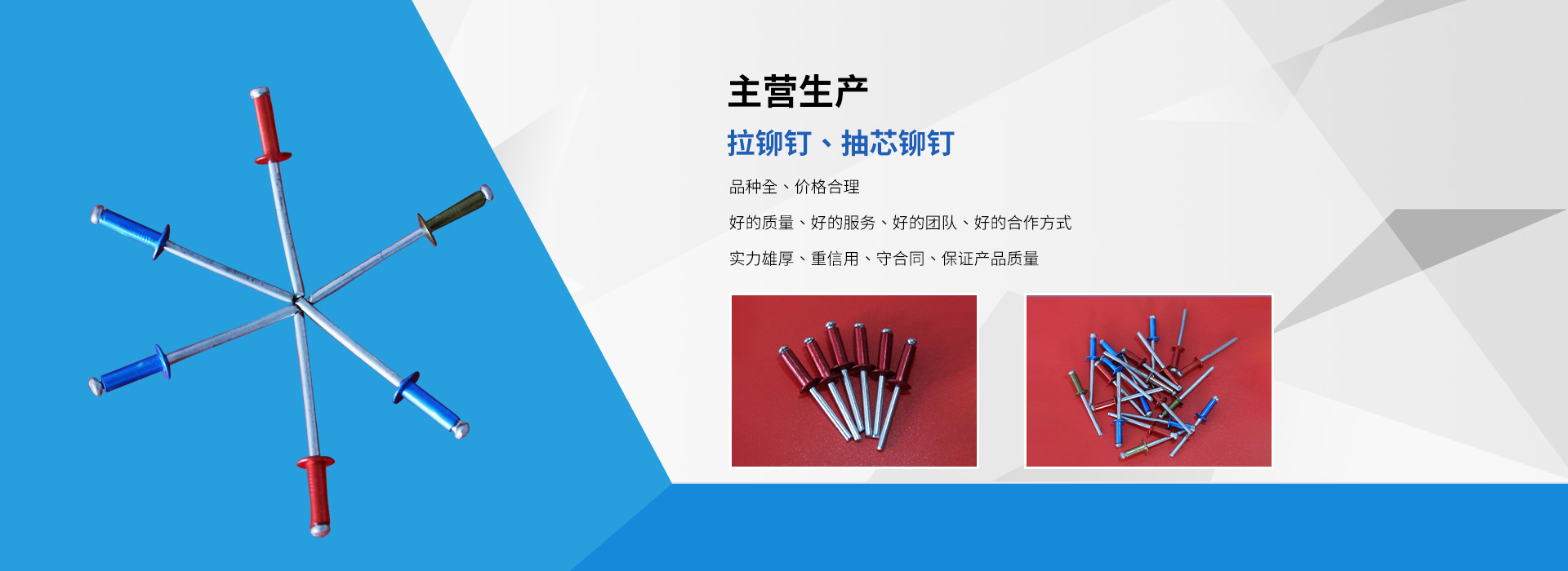 臨沂市龍牌異型鉚釘廠是拉鉚釘、抽芯鉚釘等產(chǎn)品生產(chǎn)加工的個(gè)體經(jīng)營(yíng),公司總部設(shè)在臨沂市羅莊區(qū),臨沂市龍牌異型鉚釘廠具有完整、科學(xué)的質(zhì)量管理體,公司自成立以來(lái),一直秉承“質(zhì)量為準(zhǔn),客戶至上”的經(jīng)營(yíng)理念,以產(chǎn)品“品種豐富、價(jià)格合理”,在消費(fèi)者當(dāng)中享有較高的身分,得到了廣大消費(fèi)者的信賴與好平,公司并與多家零售商和代理商建立了長(zhǎng)期穩(wěn)定的合作關(guān)系,公司實(shí)力雄厚,重信用、守合同、產(chǎn)品質(zhì)量放心,以多品種經(jīng)營(yíng)特色和薄利多銷(xiāo)的原則,歡迎廣大消費(fèi)者前來(lái)洽談業(yè)務(wù)!